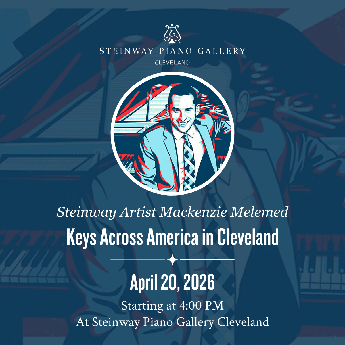 Designed for students, join Steinway Artist Mackenzie Melemed as he introduces Keys Across America. This is a project he designed to celebrate American composers and music during our country’s 250th Anniversary year. Mr. Melemed will play and talk about a few of the pieces and composers featured in his program that is touring nationwide. Students and teachers are encouraged to bring questions for this interesting and interactive opportunity!